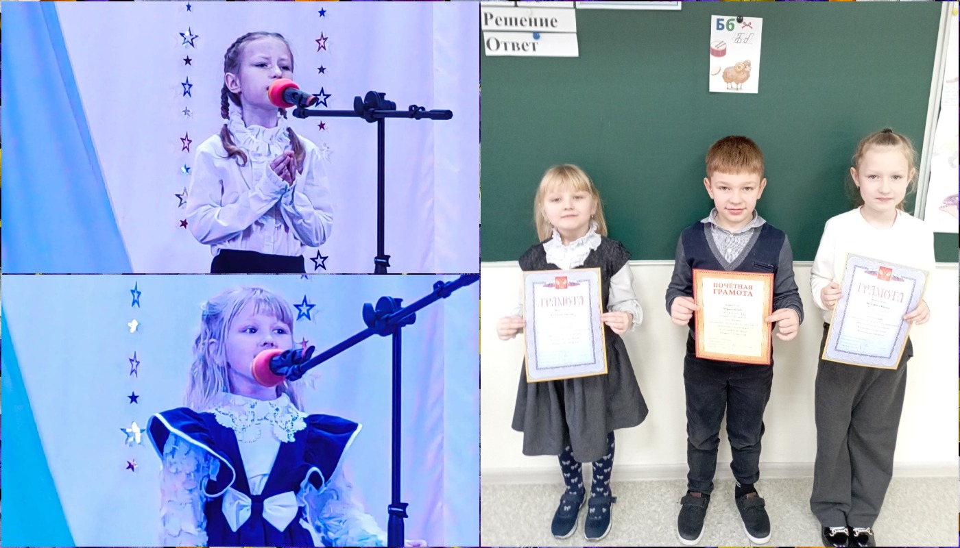 У учеников 1 «а» класса 1, 2 и 3 место в номинации «Художественное слово». Еще раз поздравляем талантливых звëздочек нашего класса Мороко Андрея, Тимонину Милану и Дружинину Ирину и желаем дальнейших успехов и побед.