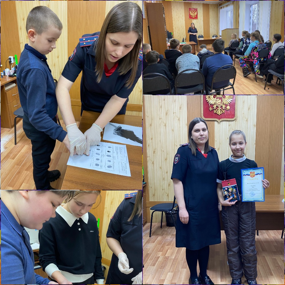 Анастасия Александровна Шадрина, специалист ГРЛС, познакомила с понятием «дактилоскопия». Все ребята с интересом снимали отпечатки пальцев, попробовали себя в роли сотрудников данного отдела.