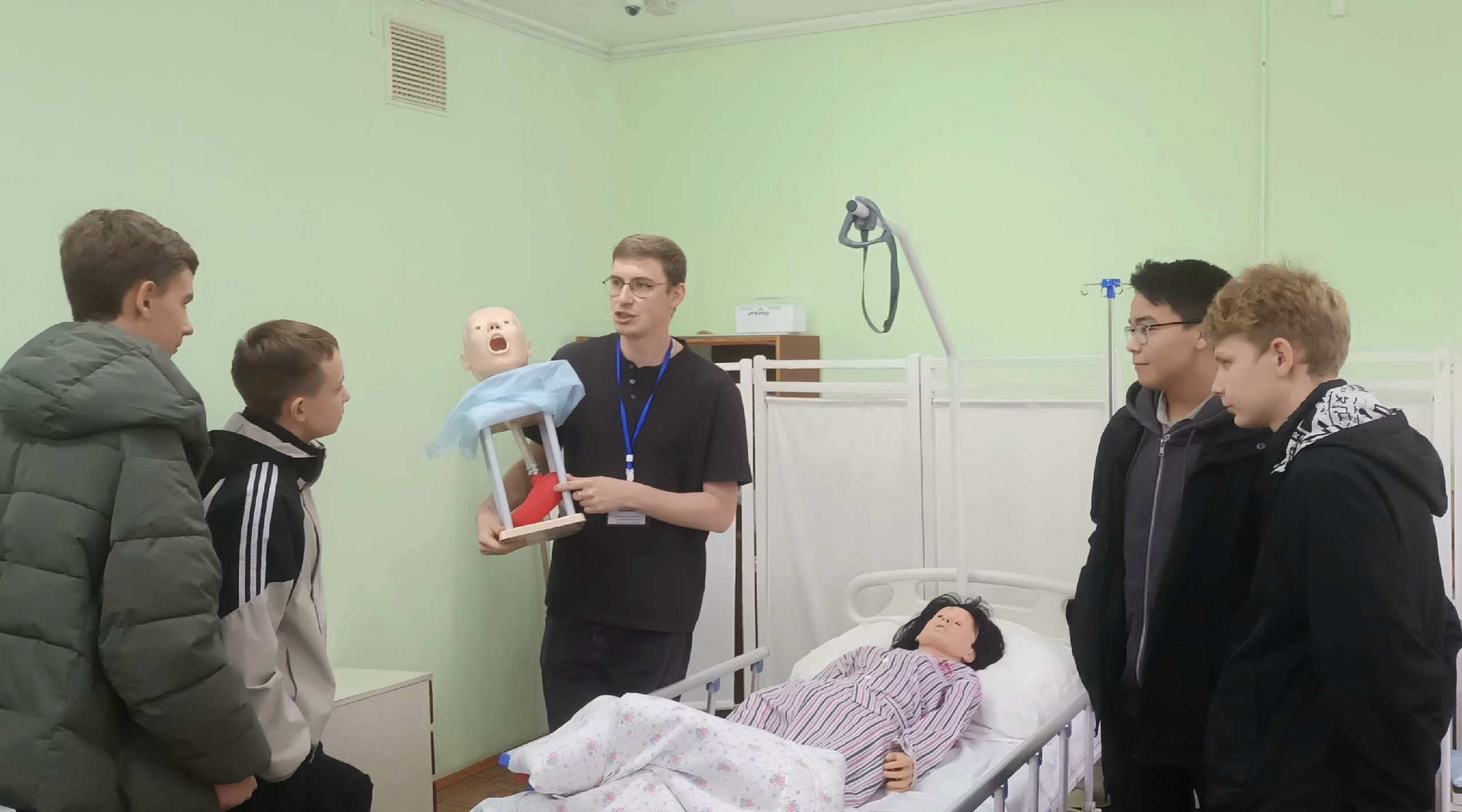 Особый интерес вызвала профессиональная экскурсия по колледжу. Школьники смогли своими глазами увидеть медицинские фантомы, используемые для отработки практических навыков будущими медиками. Ребята с увлечением наблюдали за тем, как студенты осваивают сложные манипуляции и оттачивают своё мастерство. Учащиеся 9 классов также получили уникальную возможность побывать на настоящих занятиях, что позволило им почувствовать атмосферу учебного процесса и ближе познакомиться с будущей профессией.