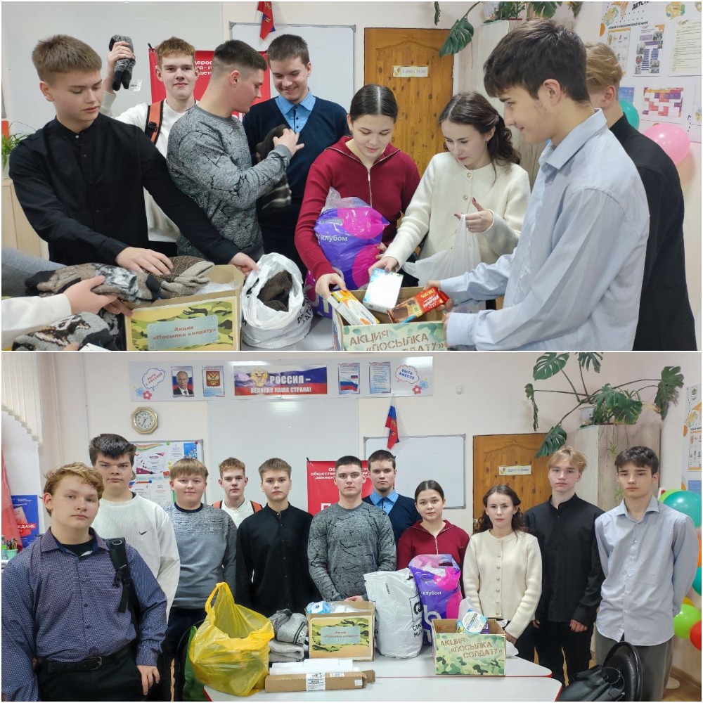 Общими усилиями была собрана гуманитарная помощь в виде медикаментов, средств личной гигиены, одежды. Собранные вещи были переданы в школьный центр "Движение первых". Мы уверены, что наша поддержка и простое человеческое внимание помогут поддержать моральный и боевой дух солдат. Мы своих не бросаем!