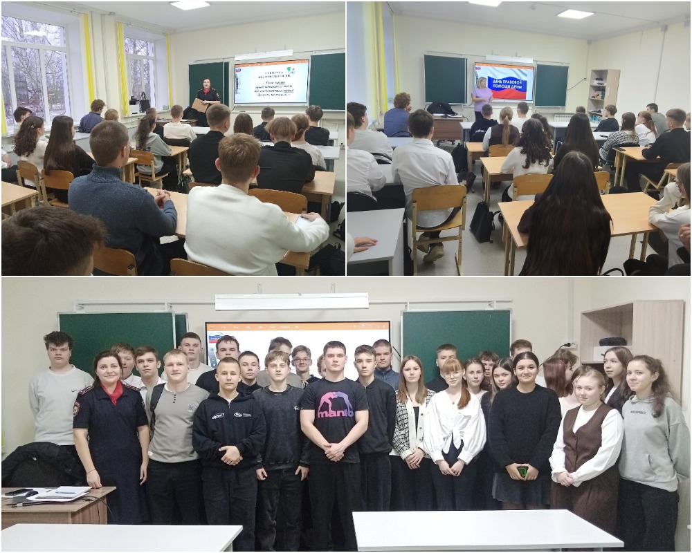 Мероприятие прошло в форме живого диалога учащихся с социальным педагогом школы Алесей Николаевной Травиной и сотрудником полиции МО МВД России «Вохомский». Участники беседы активно вспоминали, какими правами и обязанностями наделены граждане нашей страны, особенно подростки, и каким образом ответственность ложится на несовершеннолетних правонарушителей.